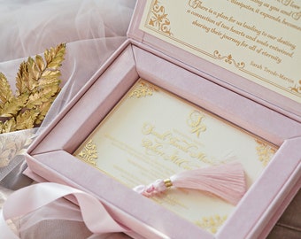 Wedding Invitation Box Powder Pink Velvet Acrylic Etsy